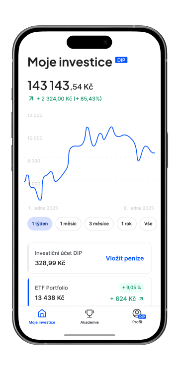 DIP neboli dlouhodobý investiční produkt má za cíl pomoci s vybudováním finanční rezervy na důchod. Je zaměřený na dlouhodobý růst vašich peněz formou investování do diverzifikovaných produktů, kterými jsou například portfolia sestavená z ETF fondů. Je státem podporovaný, tudíž přináší i možnost daňového zvýhodnění formou odpočtu až 48 tisíc korun ročně ze základu daně. Abyste mohli čerpat výhody DIP, musíte produkt držet minimálně do 60 let věku a zároveň alespoň 10 let od sjednání smlouvy.