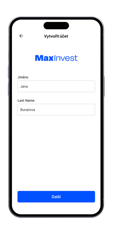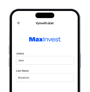 Stáhněte si aplikaci Max Invest App do svého mobilního telefonu. Založte si účet: stačí zadat e-mail a vytvořit heslo.